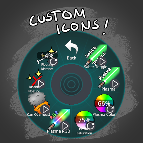 Floating system is a completely separate FX layer which can be detached or switched to another from the saber. Contains one light which automatically sets the performance to poor, but if you are worried about performance, light is disabled when the plasma is not enabled.